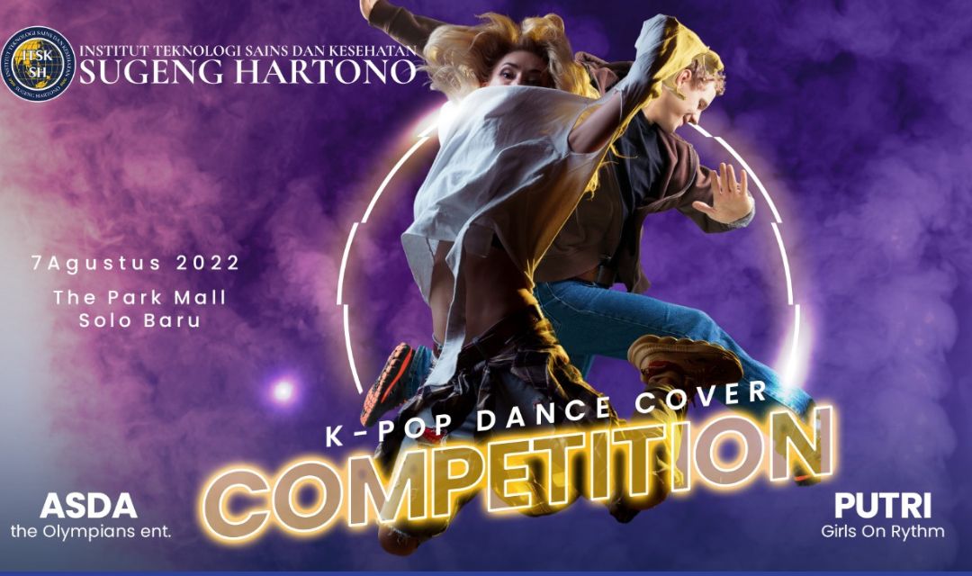 Lomba cover KPOP merupakan salah satu lomba yang tidak pernah sepi peserta maupun pengunjung yang rela menyempatkan diri ingin melihat para peserta cover KPOP beraksi. Dalam rangka ikut memerihkan lomba Cover KPOP serta untuk menginformasikan keberadaan ITSK Sugeng Hartono maka Institut Teknologi Sains dan Kesehatan Sugeng Hartono pada Minggu, 7 Agustus 2022 mengadakan Event K-POP Dance Cover Competition 2022 yang diadakan di The Park Mall Solo Baru.